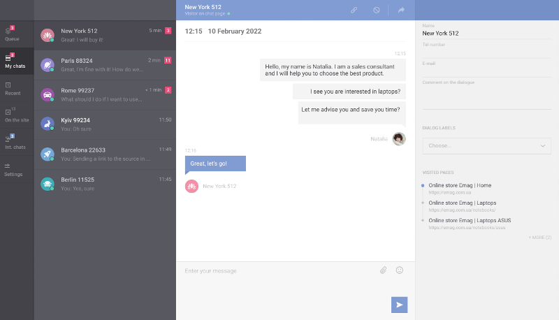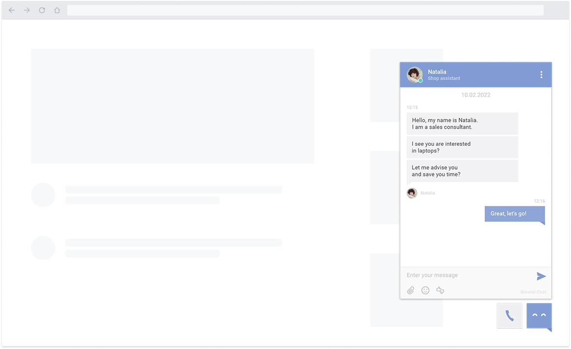 A smart widget for communicating with customers on your website. Automatically starts a dialogue with all site visitors, and then passes it on to employees. Not a single visitor will be ignored, both during working and non-working hours.